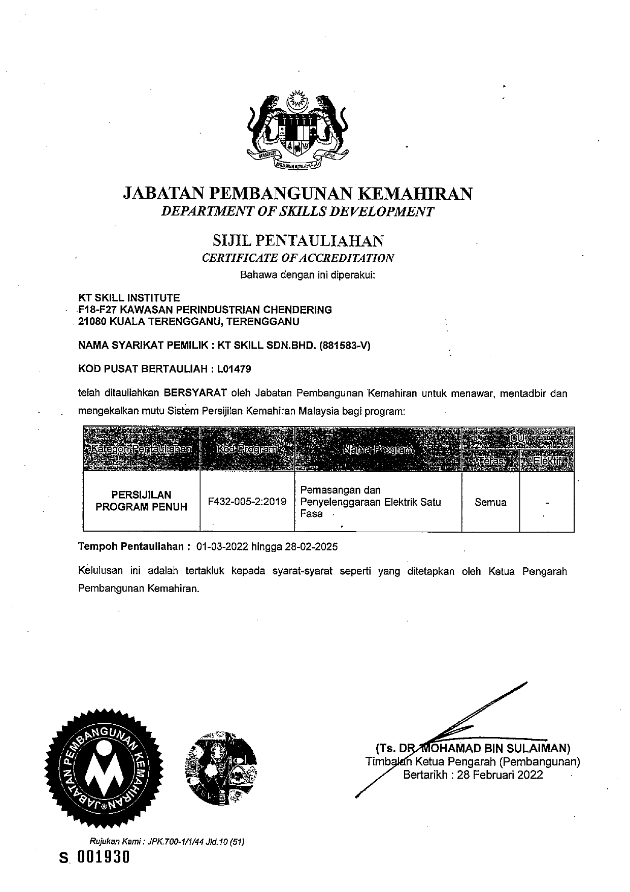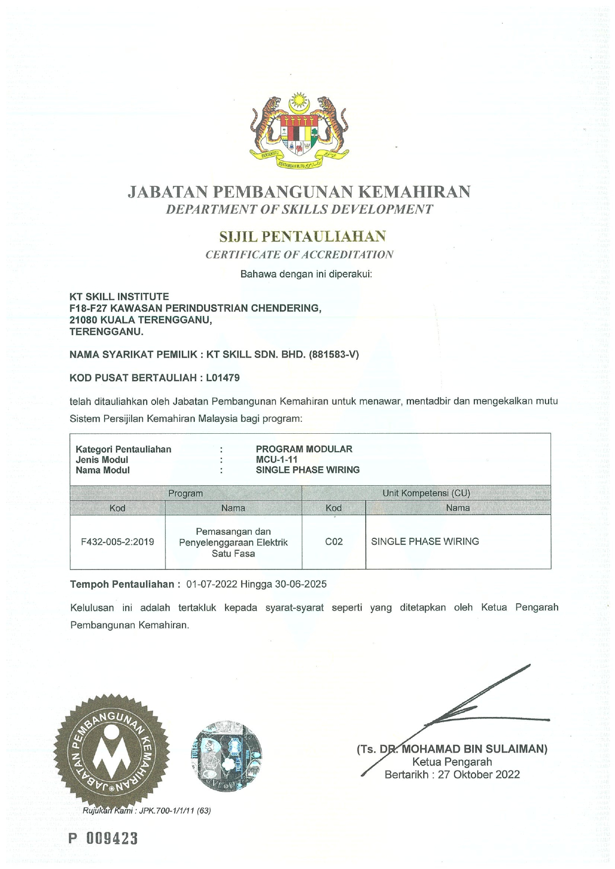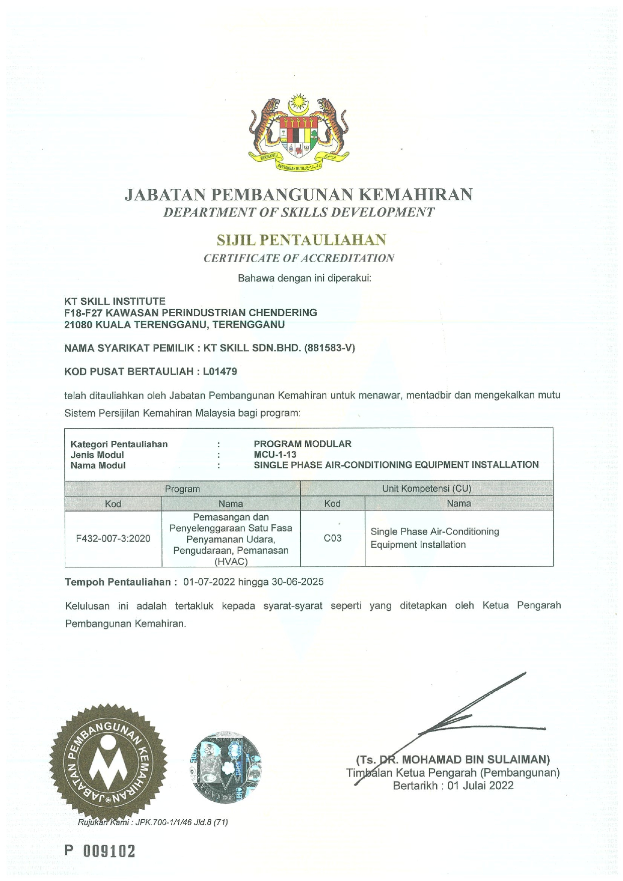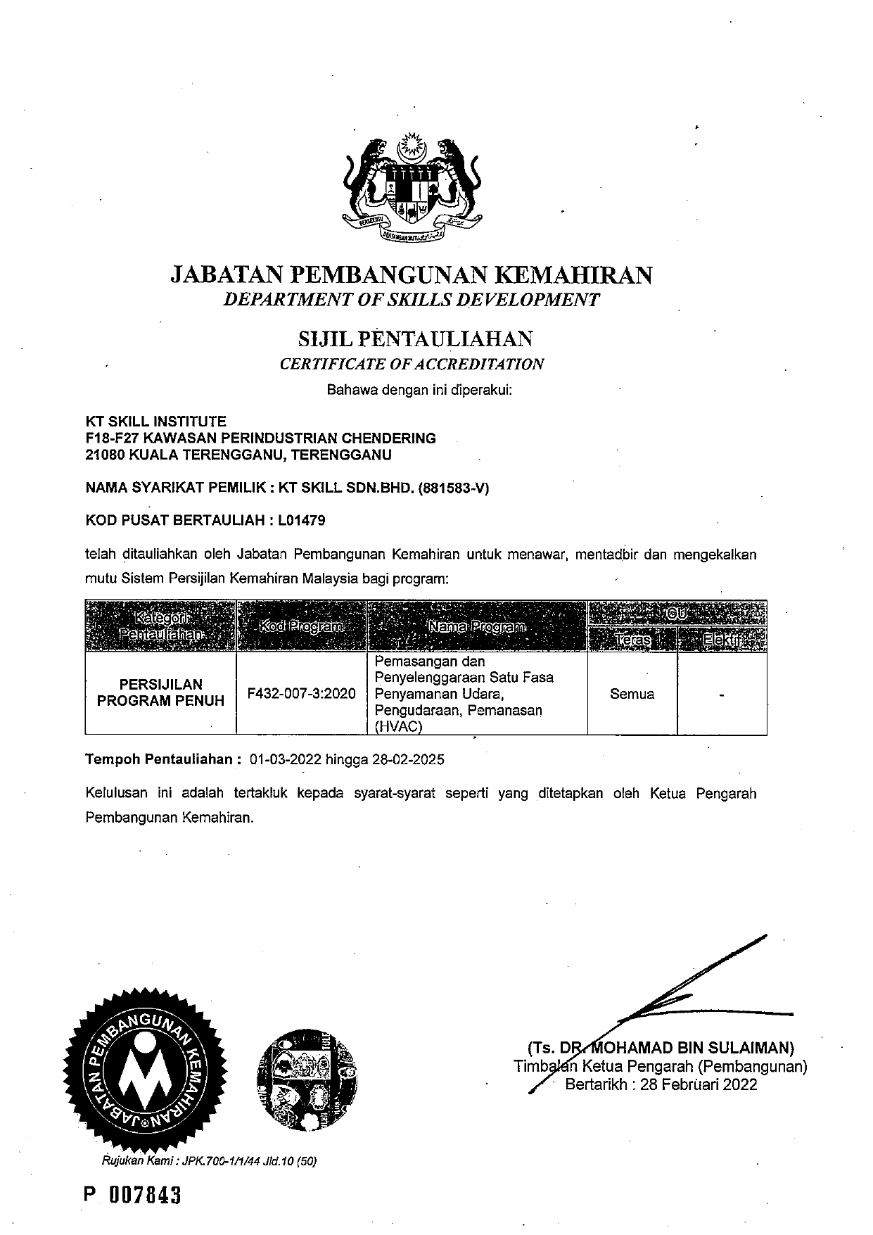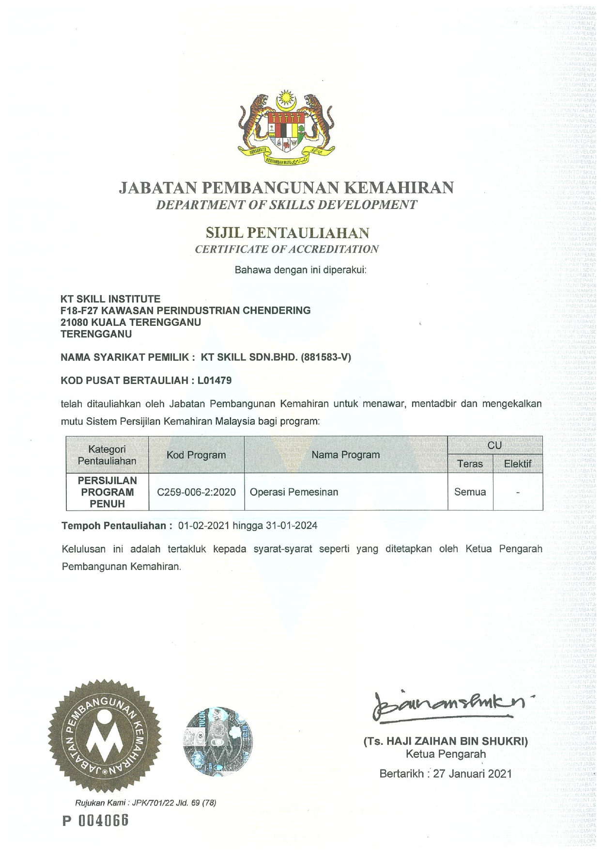 Sebuah institusi pengajian yang telah berdaftar dengan Jabatan Pembangunan Kemahiran, Kementerian Sumber Manusia, dalam menyediakan kursus pendidikan dan latihan teknikal dan vokasional (TVET) untuk para pelajar, sesuai dengan standard pekerjaan yang diiktiraf, dengan penekanan kepada komponen praktikal, kemahiran psikomotor dan pendedahan kepada latihan di industri.